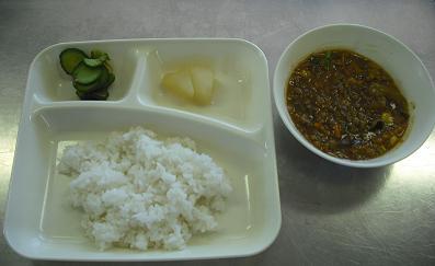 今日の給食は、「夏野菜のマーボーカレー」です。