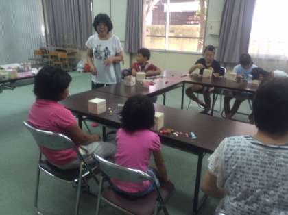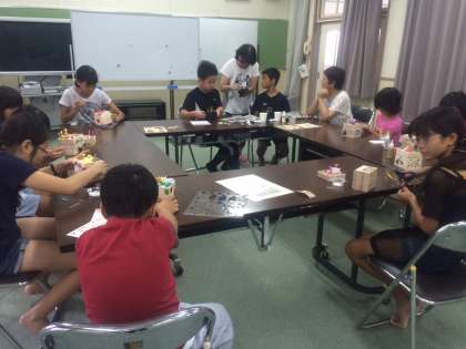今日の午前中、生涯学習ルーム主催の子どもクラフト教室があり、6人の子どもたちと、卒業した中学生も参加していました。ステキな作品が出来上がりました。夏休み明けの作品展で展示します。お楽しみに!
