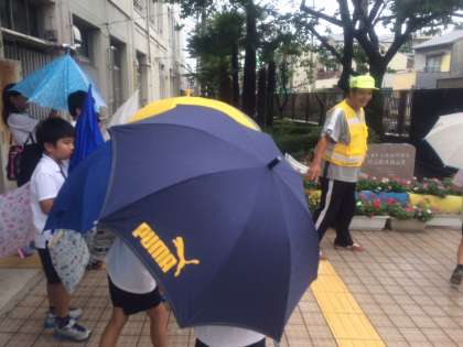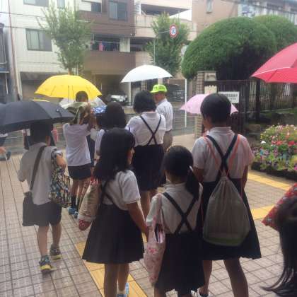 台風を想定した避難訓練を行いました。地域ごとに集まり、注意事項を聞き、見守り隊の方にもつきそっていただき下校しました。緊急の場合は、お家の方にも迎えに来ていただくことになるかもしれません。いざという時の備えをこれからもしっかりしておきたいと思います。見守り隊の皆さん、ありがとうございました。