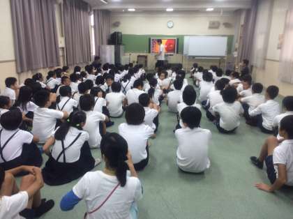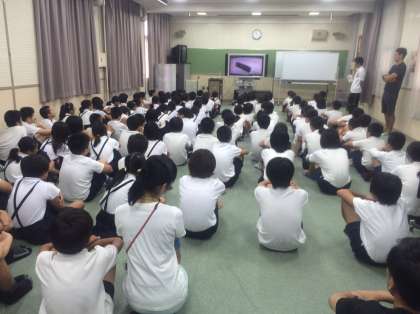 今年の運動会も5.6年生は、組体操に挑戦します。体育の学習で積み上げてきた事をふまえながら、みんなで互いを信頼し合って心を一つにする事などを目標に取り組みます。今日は、参考となるビデオを視聴して、心構えなどを確認しました。