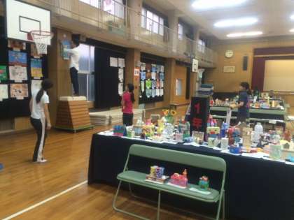 子ども達が、夏休み中に一生懸命取り組んだ作品を明日から2日間講堂で展示します。今日は、先生達がその準備をしています。子ども達の頑張りをぜひご覧になってくださいね。保護者の方は、2.3日の13時〜18時の間、ご覧いただけます。