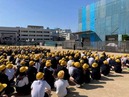 そして、春休みに登校して入学式の準備や校内の掃除をがんばってくれた6年生に、みんなで「ありがとう」と大きな声で感謝の気持ちを伝えました。