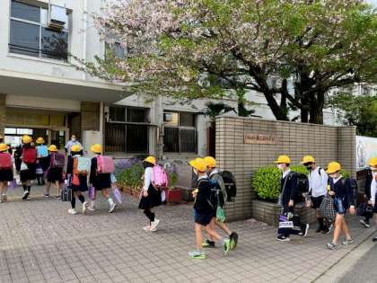 「おはようございます!」子どもたちのさわやかなあいさつが響きわたる朝の校門前です。子どもたちの新しい学年にかける意気込みが伝わってきます。