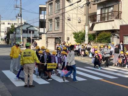 また、地域の皆さんが校区内あちらこちらで見守り活動をしていただいています。地域の皆さんの温かい見守りで、子どもたちは安全・安心に登校できています。誠にありがとうございます。