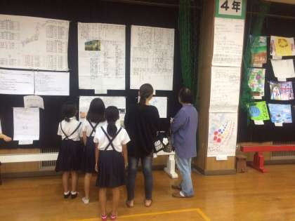 放課後家の人と一緒に作品展を鑑賞している子どもがたくさんいました。どれも力作で、頑張りが見えてよかったとの声をお家の方からもたくさんいただきました。今から来年はこんな自由研究に取り組んでみたいと話している様子も見られました。