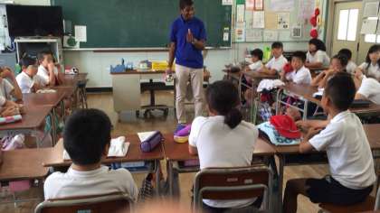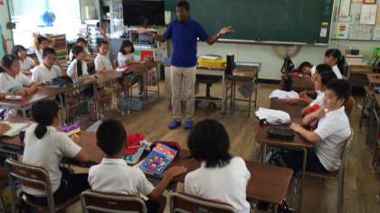 CーNETの先生が来て、今日から2学期の外国語活動が始まりました。自分の名前や天気などを英語で会話しました。