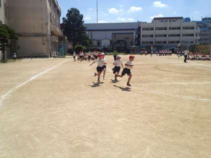 かけっこ(個人走)の練習をしました。1年生のときは、直線コースを走ったのですが、今年は、トラックを半周します。「カーブがむずかしいな!」「でも、楽しいよ!」「がんばるから応援してね!」などの感想が。