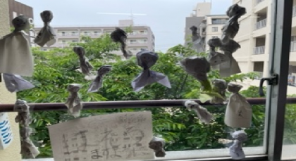 6年生は、5月19日(金)に奈良方面へ遠足に行く予定でした。前日の18日には、てるてる坊主を窓ガラスにかざって晴れますように・・・とお願いをしました。しかし、今日は、あいにくの雨で、遠足は延期、教室でお弁当を食べることになりました。