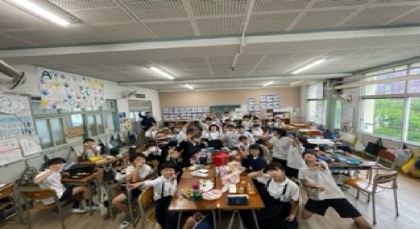登校時子どもたちは、「何で、延期なん〜!」「今は、まだ雨降ってないよ〜」などと遠足の延期を悲しむの声がたくさんありました。しかし、いざ教室でお弁当を食べるとなると、いつもとは違う環境に子どもたちは大喜びでした。座席を移動させ、それぞれのお弁当を見せ合いながらお弁当もおいしくいただきました。