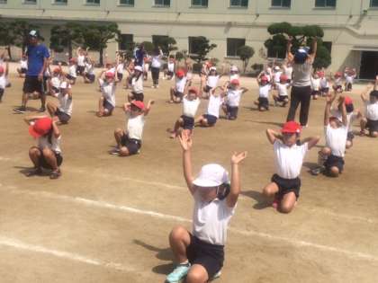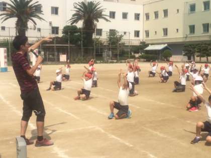 ダンスのスタートの位置を確認していました。身体を大きく動かして表現しています。