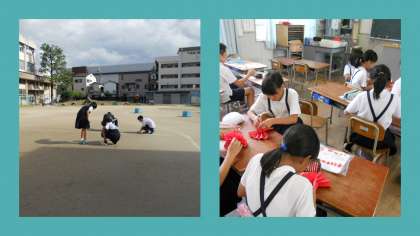 放送の練習や特典版作り、審判の打ち合わせ、そして開閉会式の練習が終わった児童会のメンバーは、石拾いをしました。
