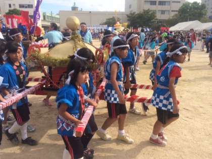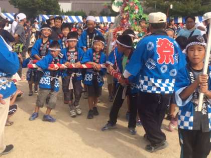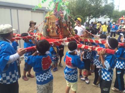 昨年までは、9月第1週目だったのが今年から変更になり、少し暑さも和らいだ感じでした。子どもたちは、元気よくみこしをかつぎました。