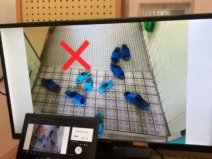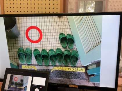 今日の全校朝会は、オンラインで行いました。校長からは次のような「はきものをそろえる」という話をしました。
