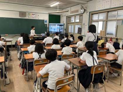 5年生と6年生に、「スマホ安全教室」をNTTドコモさんよりオンライン形式で実施していただきました。ライン等でコミュニケーションをするときは、相手に気持ちが伝わるよう工夫して思いやりを持ってやり取りすること、個人情報は投稿しないこと、インターネットで知り合った人に会いに行ったり写真などの個人情報を送ったりしないこと、お家の人や友達とルールを決めることなどを、ショートドラマを見ながらわかりやすく教えていただきました。