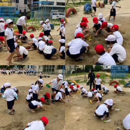 暑い季節ならではの遊び、子どもたちはいろいろと工夫しながら、友だちと仲良く遊んでいました。