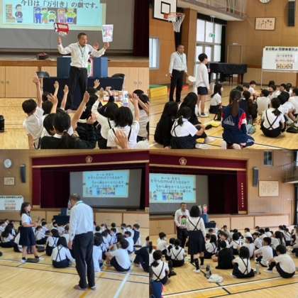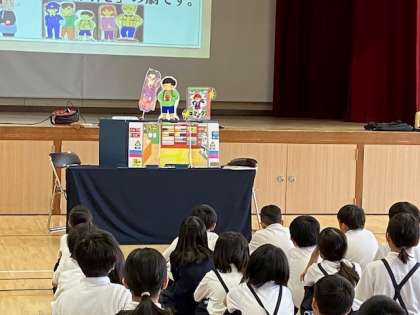 5年生は、大阪府梅田少年サポートセンターの方に来ていただき、「非行防止・犯罪防止教室」を行いました。万引きをする少年の人形劇で、ルールを守ることの大切さをわかりやすく、楽しく教えていただきました。