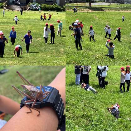 鬼ごっこをしたり、斜面をゴロゴロ転がったり、虫を捕まえたりと楽しく遊びました。