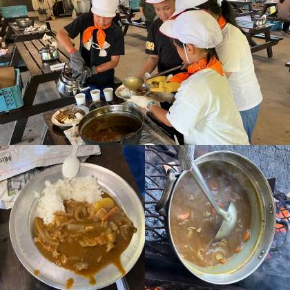 ついにカレーの完成です。とても美味しそうです。班のみんなで味わって食べましょう。