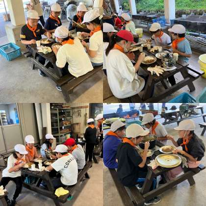 班のみんなで協力して作り上げたカレー。班のみんなで揃って「いただきます!」