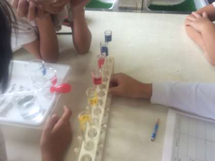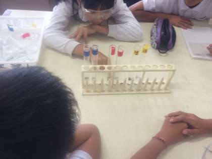 水溶液の性質の実験です。アルミニウムと鉄に塩酸や水酸化ナトリウム水溶液、しょくえんすいを加えるとどんな変化が起きるのか確かめました。
