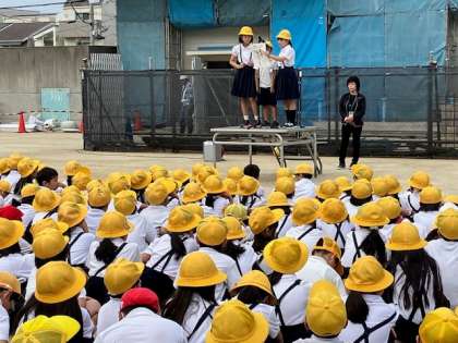 そして健康委員会から「けがの予防につとめよう」、給食委員会から「当番や係の活動に協力しよう」とそれぞれ目標の発表と呼びかけがありました。