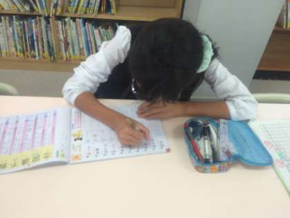 水曜日は少人数です。漢字練習や計算を頑張っていました。本を借りるだけでも参加OKですよ!