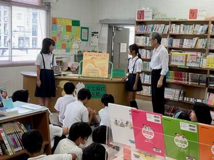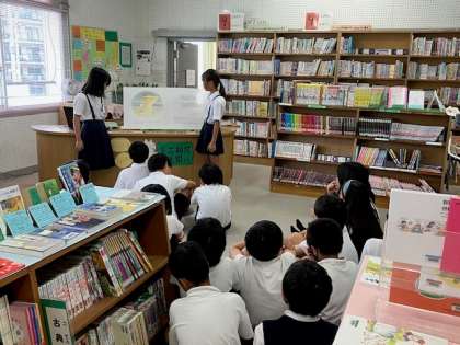 5年生の図書の時間に、図書委員がクラスのみんなに絵本の読み聞かせをしていました。読み聞かせをしていた本は、「きつねのでんわボックス」です。少し長い絵本ですが、図書委員の子どもたちは」上手に読み聞かせをしてくれていて、聞いている子どもたちもしんみりと聞き入っていました。