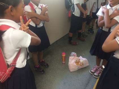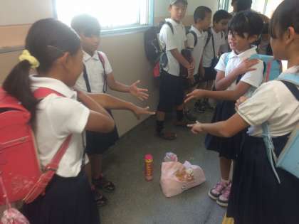 登校の時間は8時5分〜20分です。早く登校した子どもたちは、廊下や中庭で待っています。今朝はなかよくジャンケンをして待っている姿が微笑ましく映りました^_^