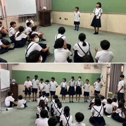 運動会の応援団の結団式を行いました。さすが、応援団に名乗り出てくれた子どもたちです。元気いっぱいにそれぞれが決意の言葉を発表していました。運動会の応援がとても楽しみです。