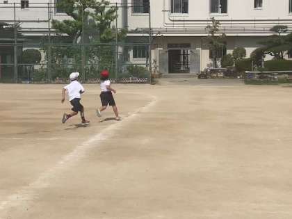 1年生の子どもたちは、体育の授業で元気に体を動かしています。体育館でマット運動をしているクラス、運動場でドッジボールをしているクラスや走っているクラス、子どもたちはみんな一生懸命にがんばっています。