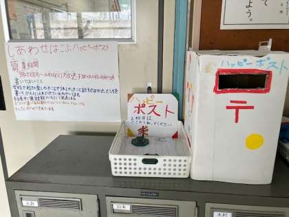 9月25日(月)から10月3日(火)まで、「ハッピーポスト」という学校で起きたハッピーな出来事を書いてポストに入れるという取り組みをしています。たくさんの子どもたちが、たくさんのハッピーを投函してくれています。児童会の掲示板にたくさんのハッピーが掲示されていました。