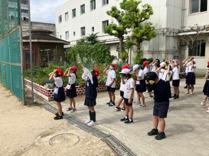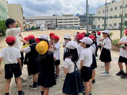 遮光板で太陽を見た子どもたちからは、「見えた!」「動いてる!」と声を出して感動していました。そして、どの方向にかげができるのかをみんなで確認しました。