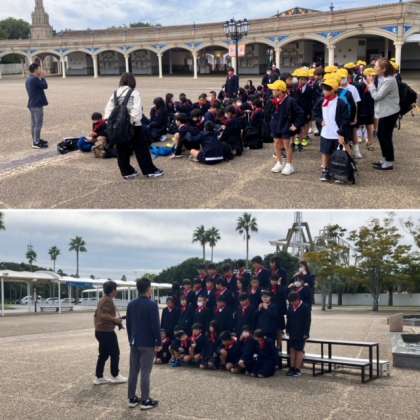 スペイン村に到着しました。ワクワクする気持ちを抑えて、まずは集合写真です。