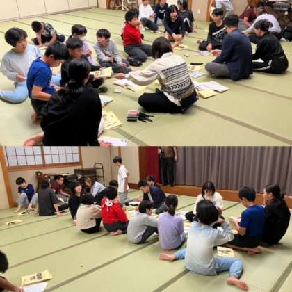 1日の締めくくりとして、子どもたちはそれぞれで1日目の振り返りをしおりに記入しました。室長は部屋のみんなのしおりを持って、室長会議にやって来ました。室長会議は、みんなで今日の課題を共有して、明日の活動の見通しをもつ場になります。