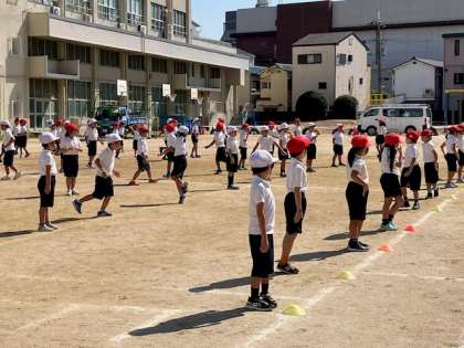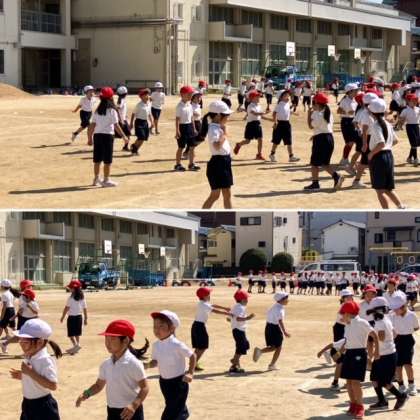 運動会が近づいてきて各学年ともに練習に力が入っています。1年生は初めての運動会ということで、みんなはりきっています。隊形移動もたくさんあって、1年生にしては難度の高い演技にチャレンジしています。