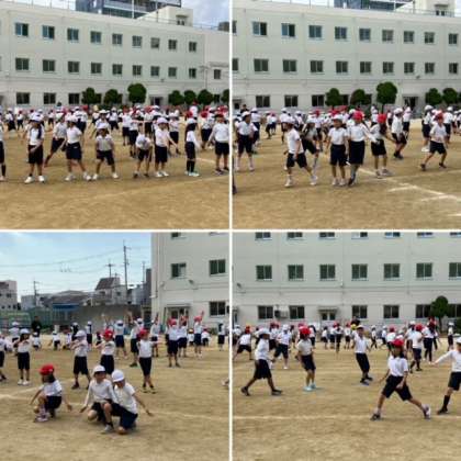 2回目の運動会となる2年生はレベルの高い演技にチャレンジしています。次々に隊形移動をするところがあったり、順番に動いていくところがあったりと周りと息を合わせて演技をする必要があります。難しい演技ですが、余裕の表情で気持ちよくダンスをしている子もいます。練習を重ねて、みんなで良い演技にしてくださいね。楽しみにしています。