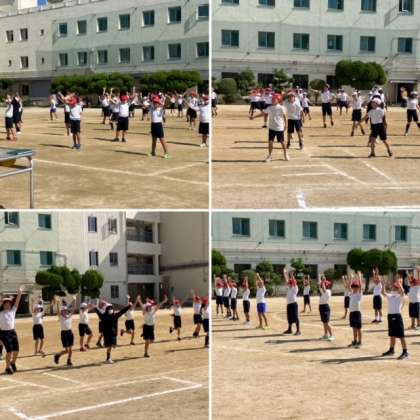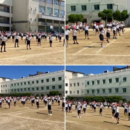 今日の3年生の運動会の練習は、運動会で踊るダンスを、最初から通して練習をしていました。たくさんの隊形移動もあり、3年生らしく元気いっぱいに踊る見せ場いっぱいの演技です。子どもたちの大好きな曲で踊るので、みんな生き生きとしています。今日の青空にぴったりの子どもたちの笑顔でした。