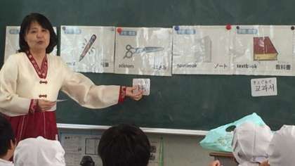 5年生の給食交流の後、ソンセンニムに文房具関係の言葉を教えていただきました。「教科書」は発音が似ていることがわかって、子どもたちは少しの驚きを持って学びました。放課後は、民族クラブの教室での活動をしました。