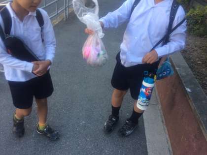 2年生の子が、何やら袋にたくさん入れて登校してきました。