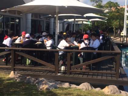 食事をしたり、次はどれに乗ろうか相談しているグループなど様々です。