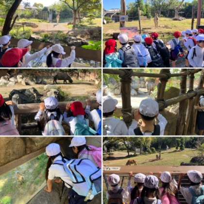天王寺動物園のアフリカサバンナゾーンには、ライオン、キリン、シマウマなど、子どもたちのよく知っている動物たちがいます。みんな楽しそうです。