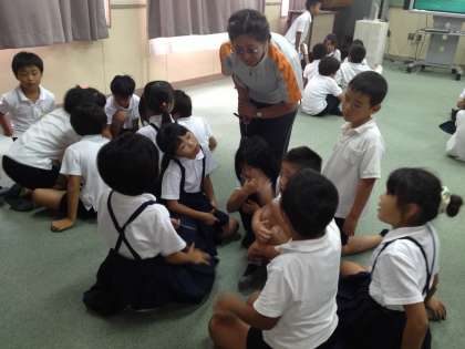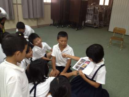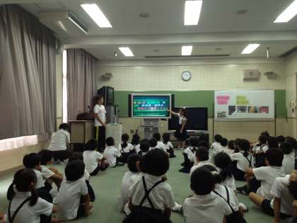 夏休みに研修会に参加し、駅を回って教材をつくり、書画カメラ(ICT機器)などを使って進めました。子どもたちは、「あれ、見たことある!」「これは、何に役立っているにかな」などグループで話し合い、確かめ合うことができました。