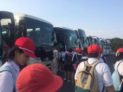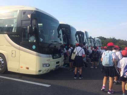 もくもくファームを出発し、学校を目指します。道路が混んでいなければ予定通り5時前に学校着の予定です。