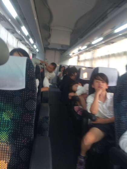 バスは吹田インターをでて、桃山台駅前です。後30分ほどで到着です。DVDを見ています。