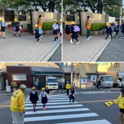 朝の校門付近です。見守り隊の皆さん、いつもありがとうございます。