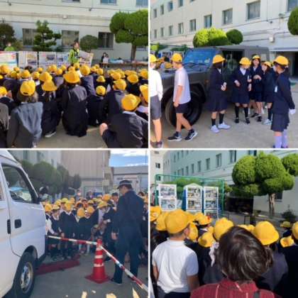 警察の方からは動かなくなった自動車を持ち上げる機械を体験させていただきました。1年生でも車が持ち上がるのでびっくりです。