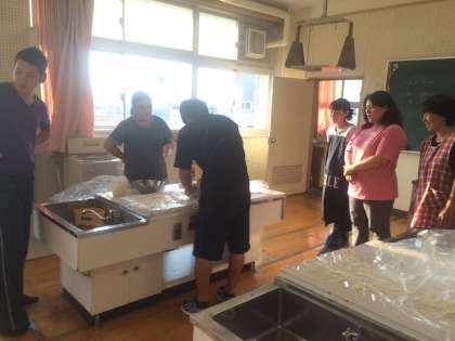 放課後家庭科室で6年の先生とPTAの方々が、家庭科室で何やら作っていました。今度の学年集会の準備、お試しだそうです。何をするのか分かりますか?