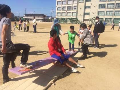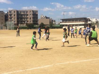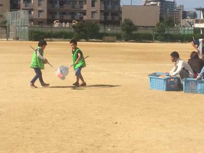 淀川区、東淀川区、北区の小学校、中学校の民族クラブの子どもたちが集まって、淡路中学校で運動会を行いました。天気がよく時々爽やかな風も吹いて、気持ちがよく、しっぽ取りや、リレー、大きなスプーンで風船を2人ではさんで運ぶ競技など、どれも楽しんで参加していた二年生のT君。卒業生のM君も元気に参加していました。お世話になったソンセンニム、先生方ありがとうございました。