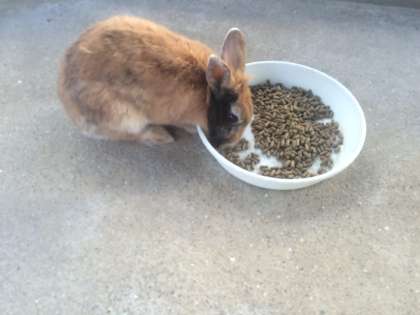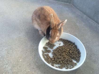 おなこがすいていたのか、ウサギ小屋に入るとずっとついてきていました。とっても人懐っこいショコラです^_^