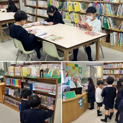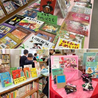 その後、それぞれが読みたい本を選んで本を読みます。昔話のコーナーやおすすめの本のコーナーなど、いろいろな本のコーナーが作られていて、子どもたちが本を選びやすくなっています。2月14日のバレンタインデーにちなんだ本のコーナーもありました。